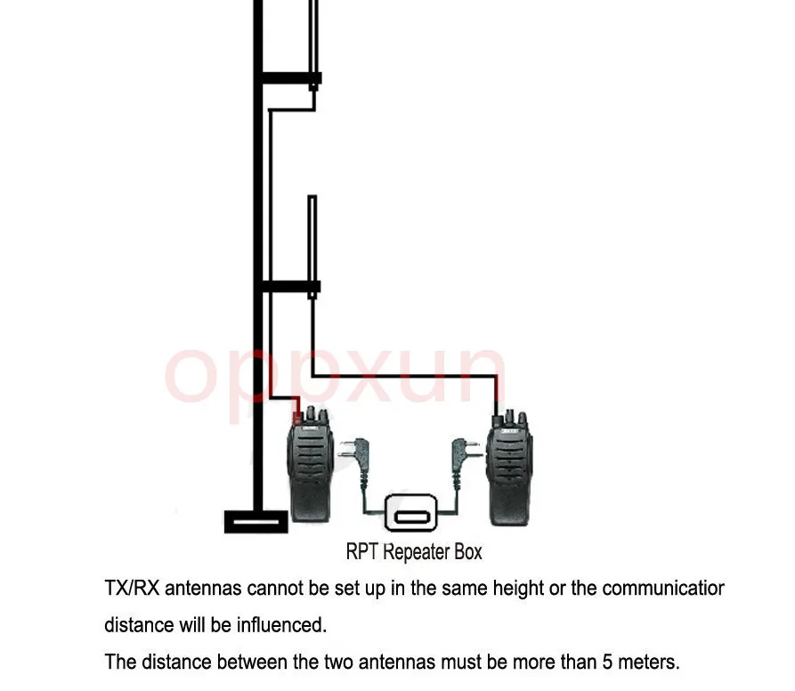 1. Unique multiplexor: dos de mano ordenador conectado a una estación de relevo, tales como el multiplexor sin igual, dos manos deben ser por separado utilizando dos antena! los dos antena debe ser erigida verticalmente! y entre los dos de ellos tratar de distancia! al menos no menos de 5 metros! (dos walkie talkie antena eviten la duplicación de erección!)
