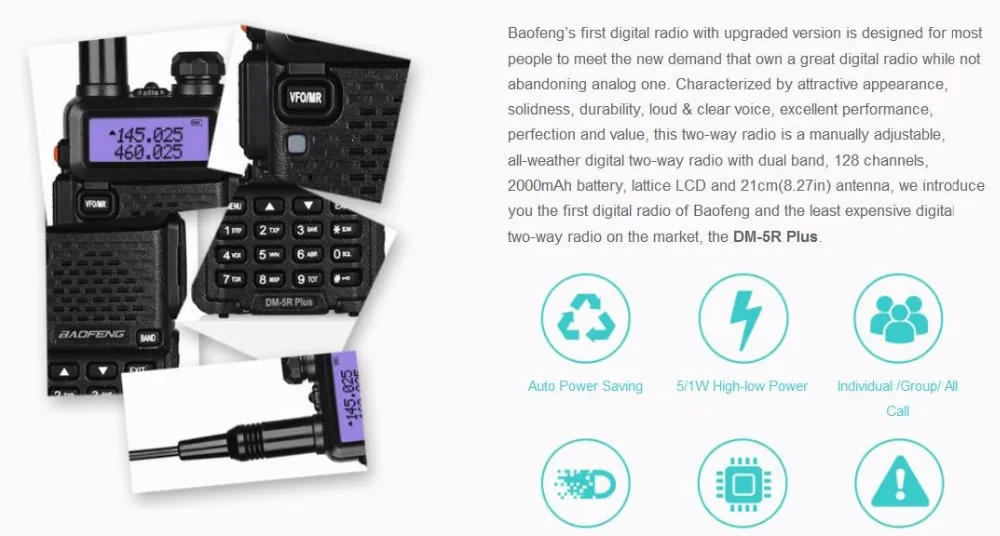 2018 Discount Baofeng DM-5R plus radio Digital support work with Motolora radio DMR repeater 2000mAh battery long distance walkie talkie 10km intercom radio Rating: 5 out of 5