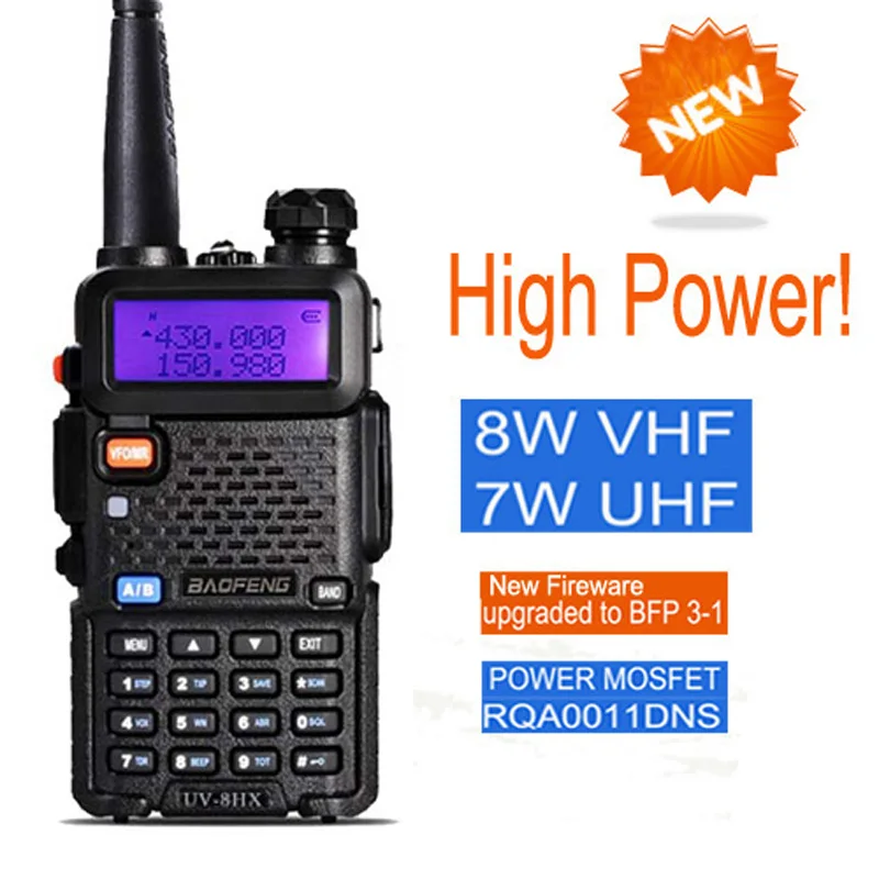 +++True capable of transmitting 8 watts,Longer Effective Talking Range +++the third and final generation of the UV-5R,New “High Power”firmware upgrade to BFP 3-1 +++tri-color display makes for easy reading on the bright LCD +++Much like its little brothers (the BF-F8+ and the UV-5R) the BF-F8HP maintains full cross accessory compatibility with all previous UV-5R accessories Power Actual MeasurementReturn Policy