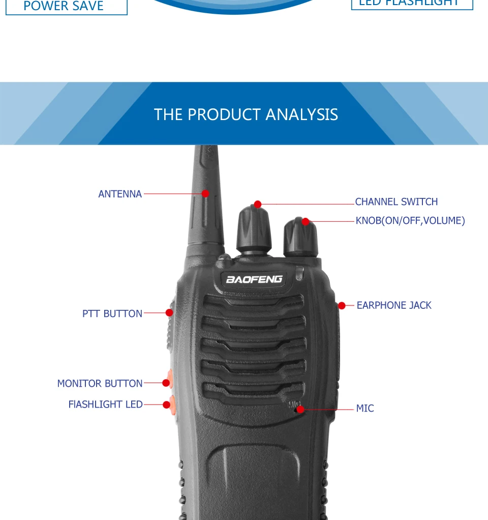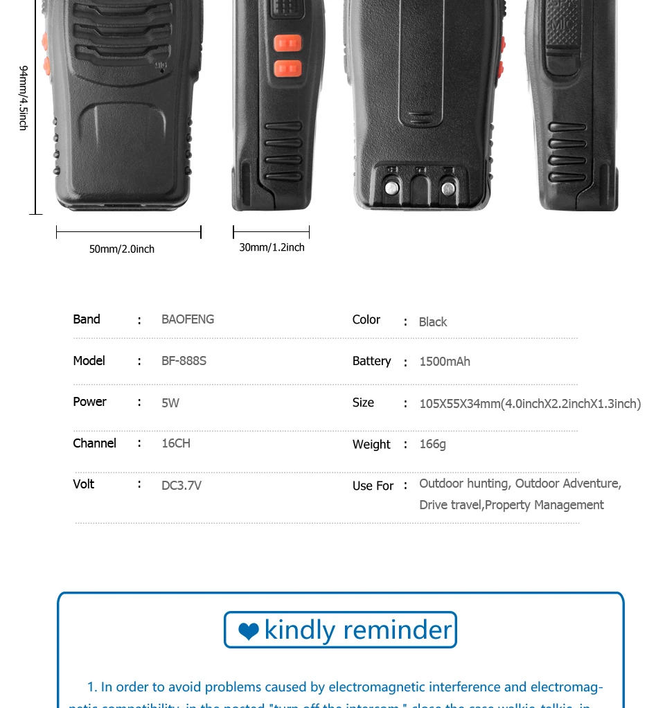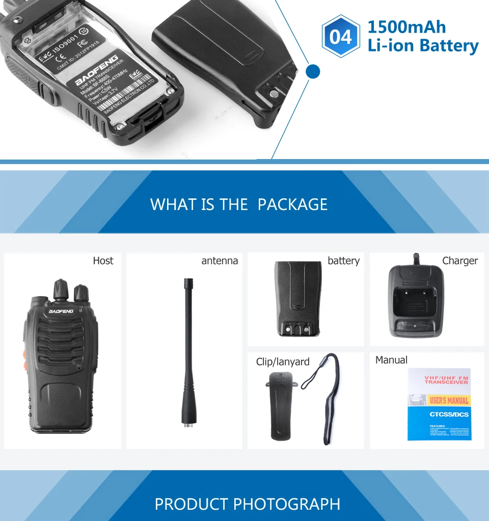 2pcs baofeng 888s walkie talkie add extra Li-battery: