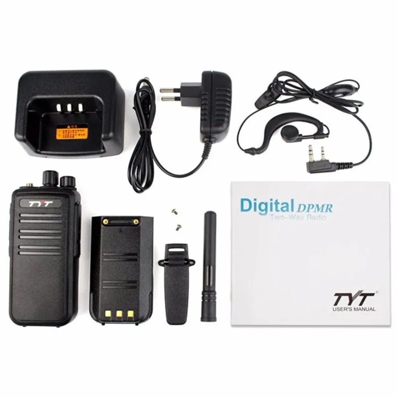 Package Include:5 x TYT DP-290 Digital DPMR Walkie Talkie UHF 4W 16Channels Scrambler VOX Two Way Radio5 x Antenna5 x Li-ion battery5 x Belt Clip5 x Charger EU/US5 x Charger Adapter5 x Verification5 x User\s Manua